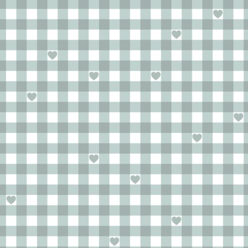 Tissu Imprimé Vichy Coeur Sauge, 11 tissus au choix