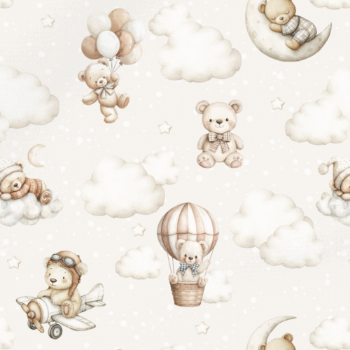 Tissu Imprimé Ourson Ciel Beige Pastel, 10 tissus au choix