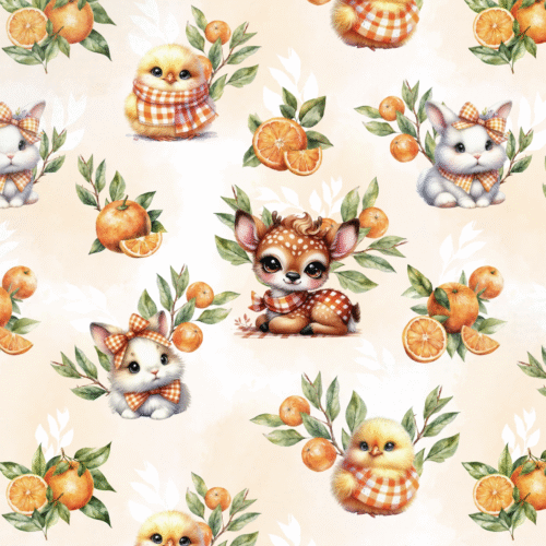 Tissu Imprimé Biche Lapin Poussin Orange, 11 tissus au choix