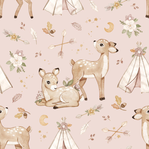 Tissu Imprimé Biche Foret Boho Rose, 11 tissus au choix