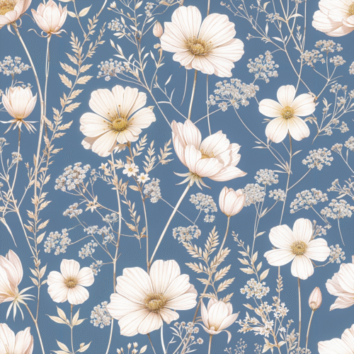 Tissu Fleurs Delicatesse Bleu Jean, 11 tissus au choix