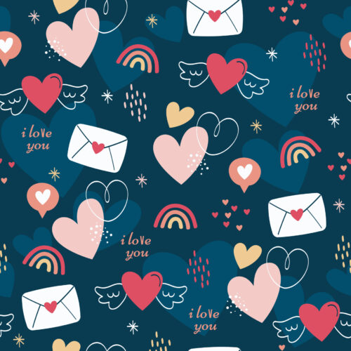 Tissu Imprimé Coeurs I Love You Bleu, 11 tissus au choix