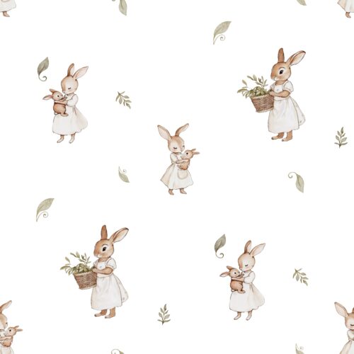 Tissu Imprimé Lapin Maman Bébé Feuilles, 11 tissus au choix