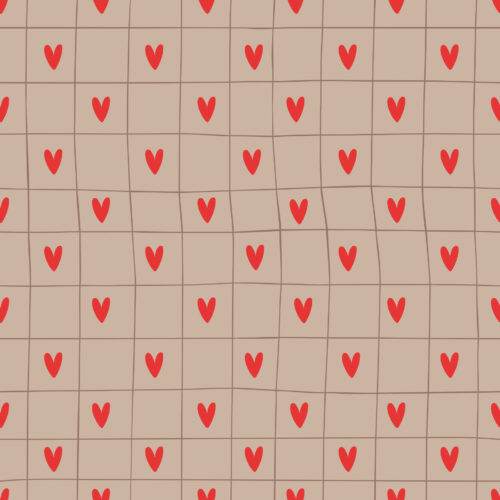 Tissu Imprimé Coeur Rouge Carreaux Beige, 11 tissus au choix