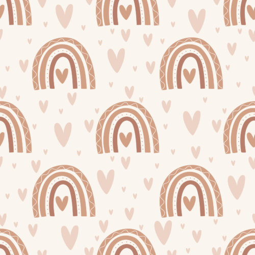 Tissu Imprimé Arc-en-ciel Beige Coeur, 11 tissus au choix