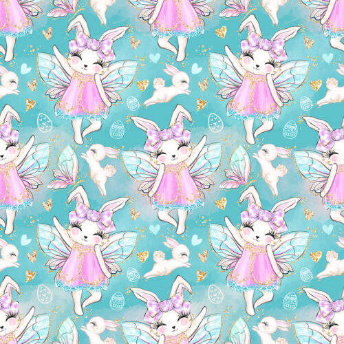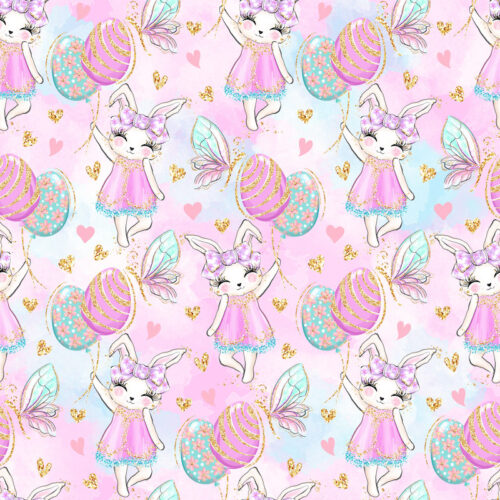 Tissu Imprimé Girly Paques Fée Lapin, 10 tissus au choix