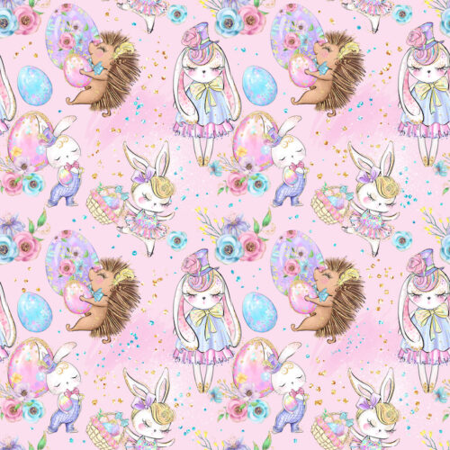 Tissu Imprimé Girly Paques Lapin Hérisson, 10 tissus au choix