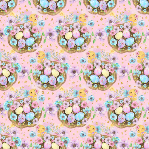Tissu Imprimé Girly Paques Oeufs Fleurs Rose, 10 tissus au choix