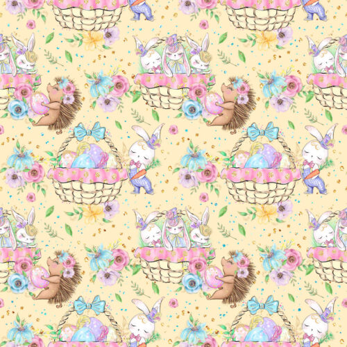 Tissu Imprimé Girly Paques Lapin Hérisson Panier, 10 tissus au choix