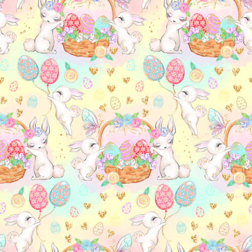 Tissu Imprimé Girly Paques Fée Lapin Panier, 10 tissus au choix