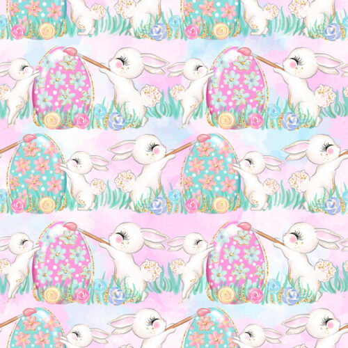 Tissu Imprimé Girly Paques Lapin Oeufs, 10 tissus au choix