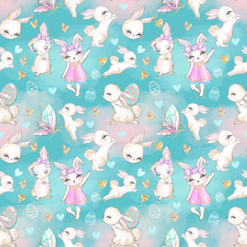 Tissu Imprimé Girly Paques Lapins Magiques, 10 tissus au choix