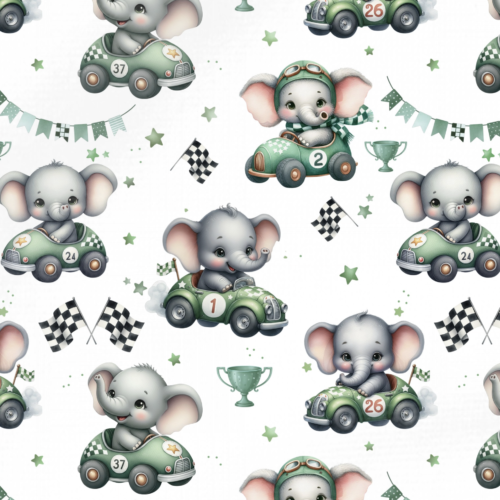 Tissu Imprimé Elephant Voiture Verte, 11 tissus au choix