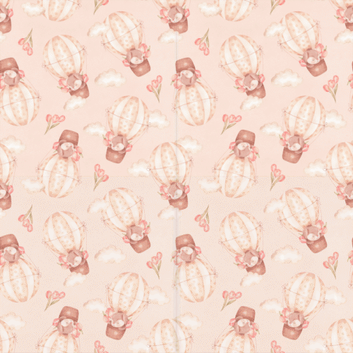 Tissu Imprimé Lapin Ballons Tulipes Rose Petit, 10 tissus au choix