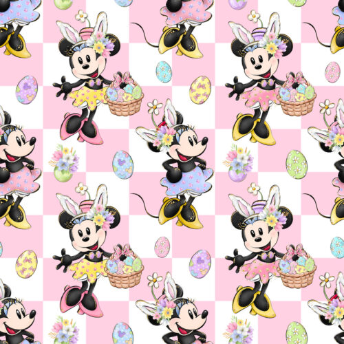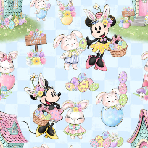 Tissu Imprimé Paques Girly Lapins Carreaux, 10 tissus au choix