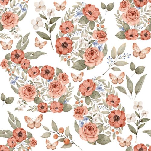 Tissu Imprimé Papillons Magiques Fleurs, 10 tissus au choix