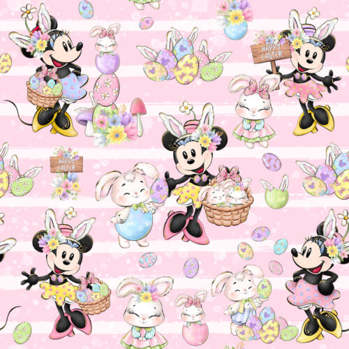 Tissu Imprimé Paques Girly Lapins Rose, 10 tissus au choix