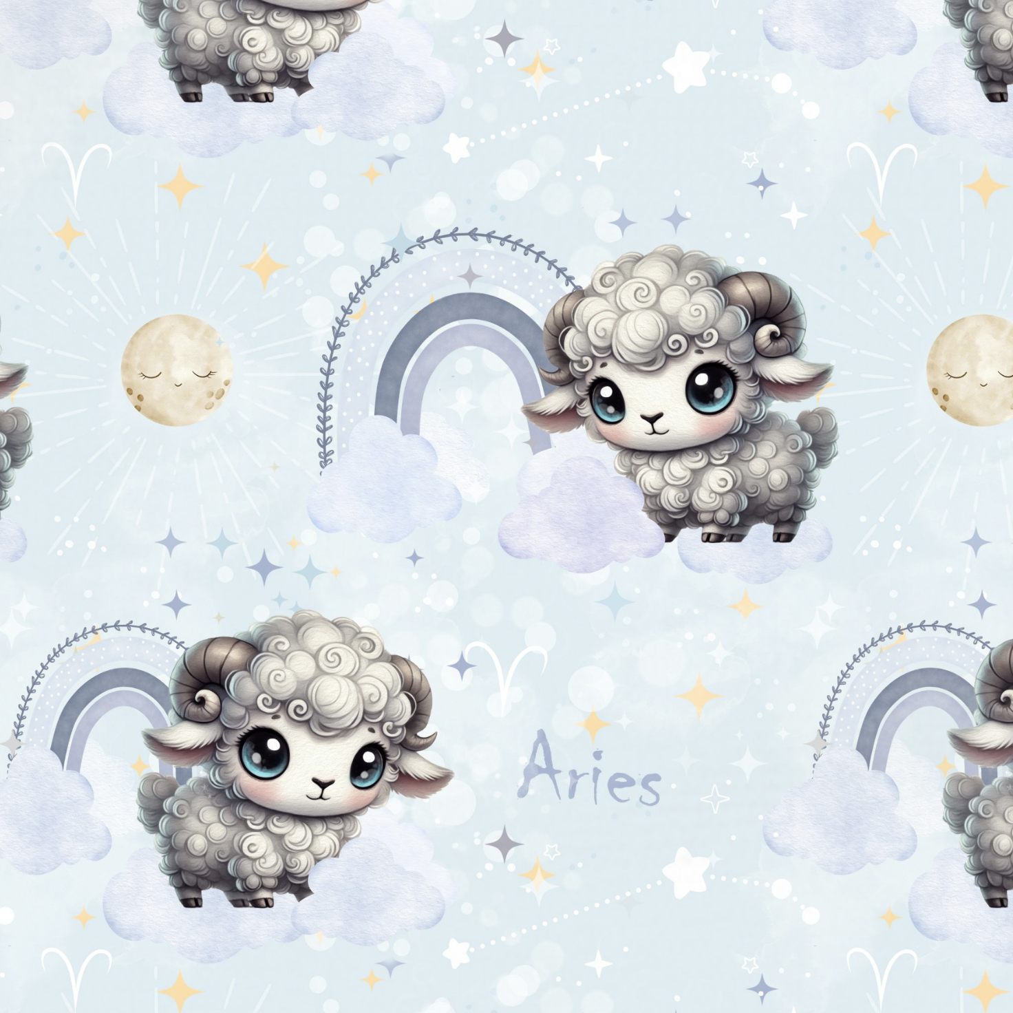 Découvrez notre magnifique imprimé Astro Mignon Belier, idéal pour réaliser des créations pour enfants, à la fois confortables et adorables.