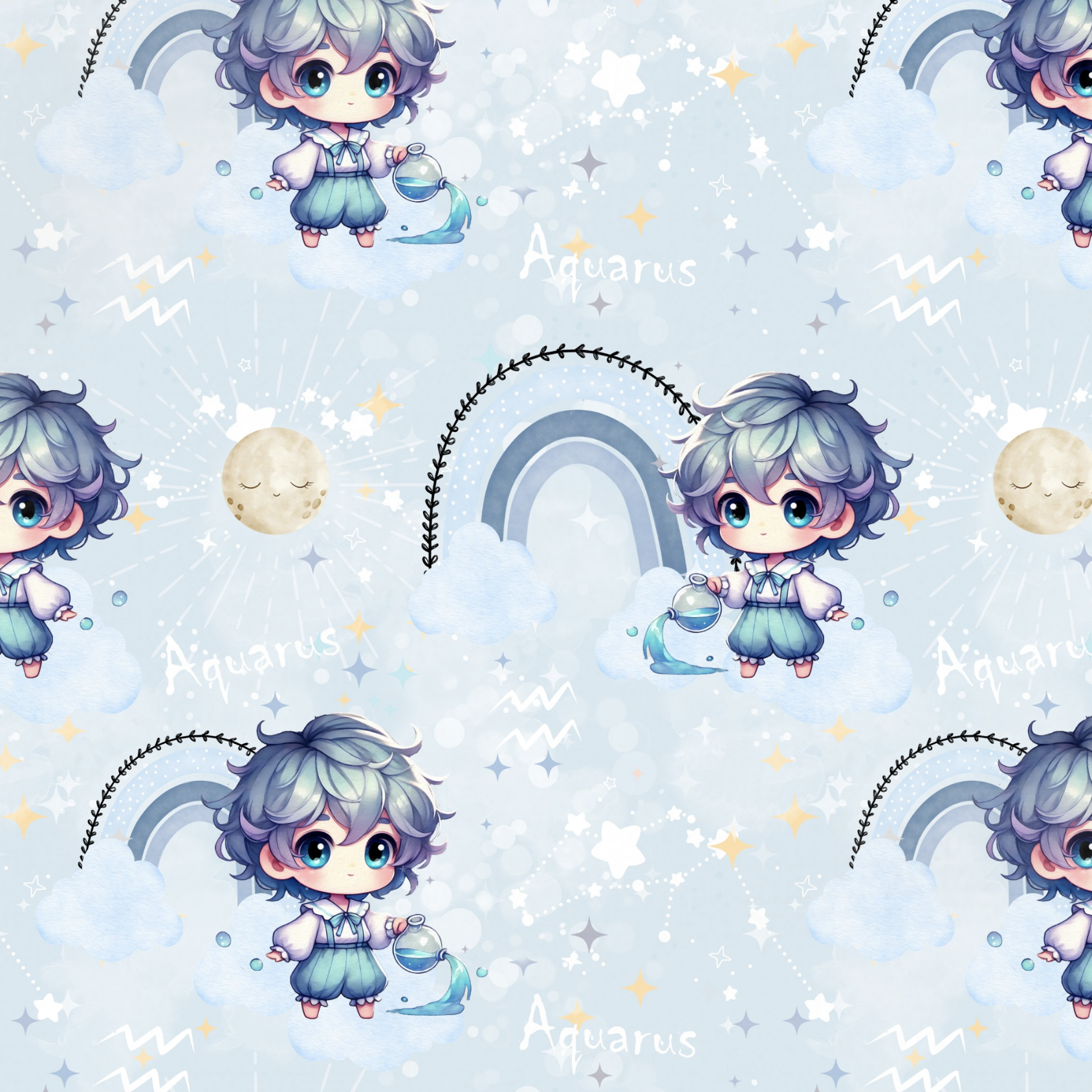 Découvrez notre magnifique imprimé Astro Mignon Verseau, idéal pour réaliser des créations pour enfants, à la fois confortables et adorables.