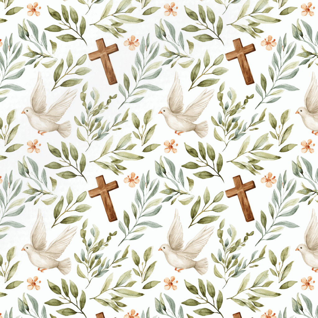 Découvrez notre magnifique imprimé Baptême Feuilles Colombe, idéal pour réaliser des créations pour enfants, à la fois confortables et adorables.