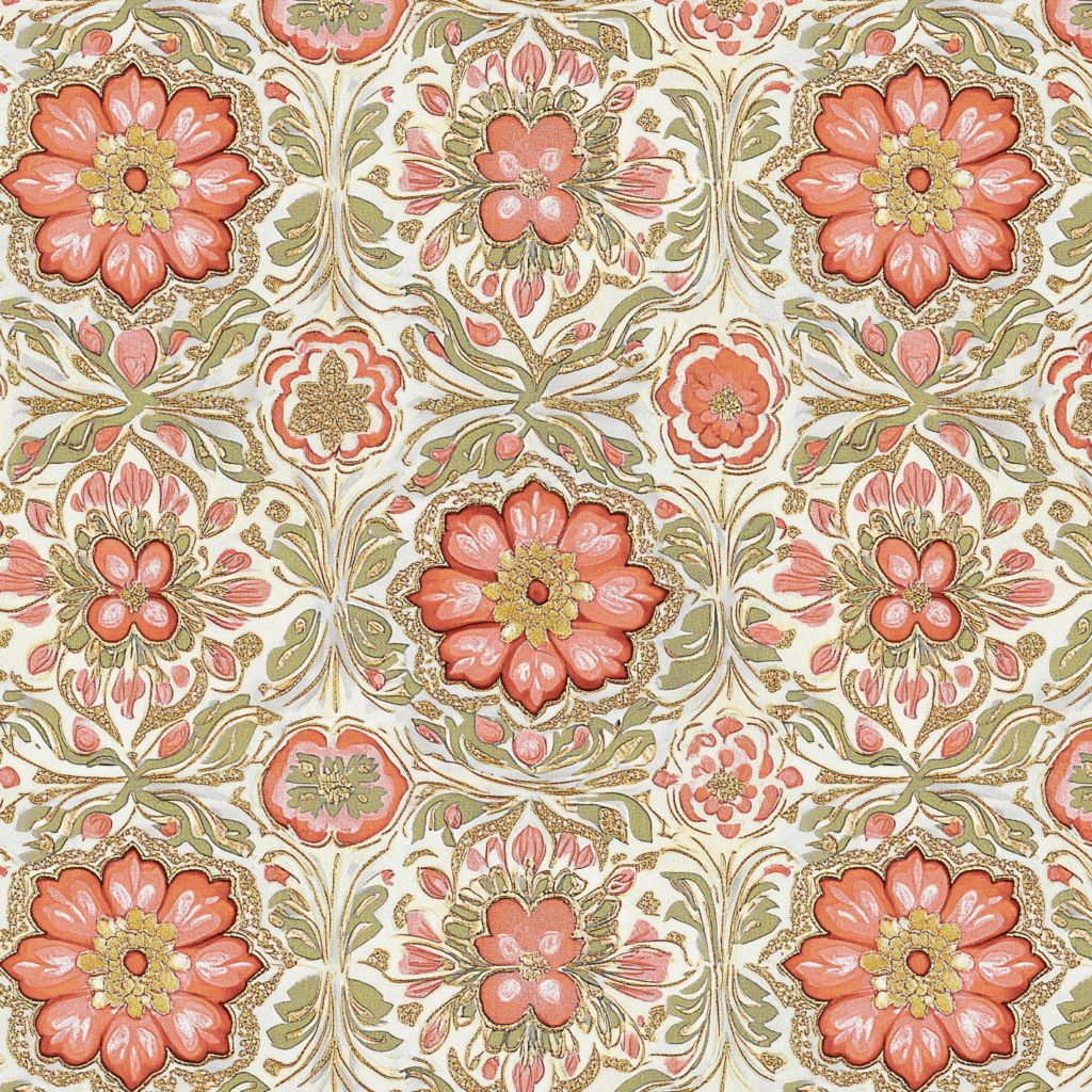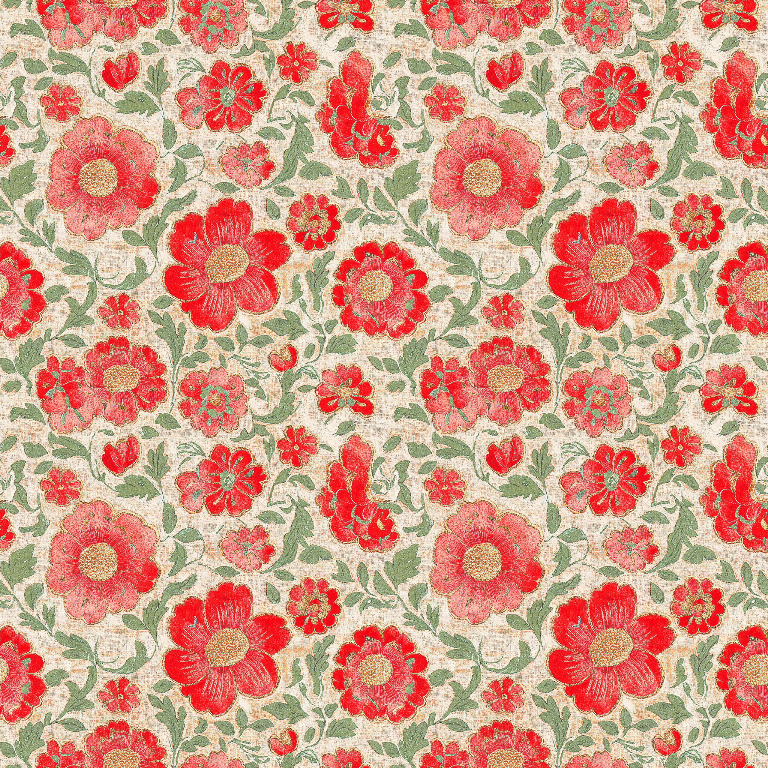 Tissu Imprimé Bohème Fleuri Rouge Corail, 11 tissus au choix