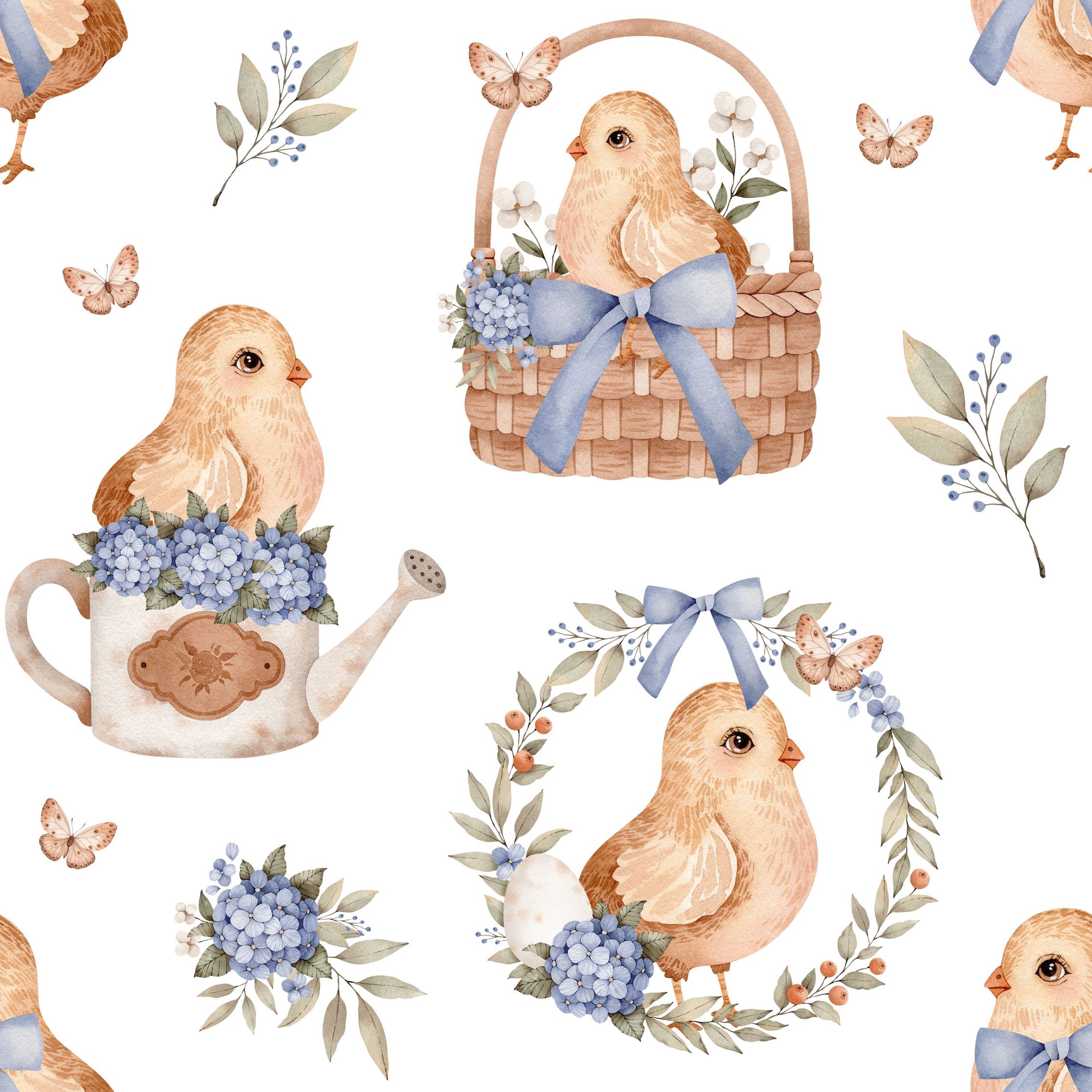 Découvrez notre magnifique imprimé Exclusif Paques Poussin Panier Bleu, idéal pour réaliser des créations, à la fois confortables et adorables.
