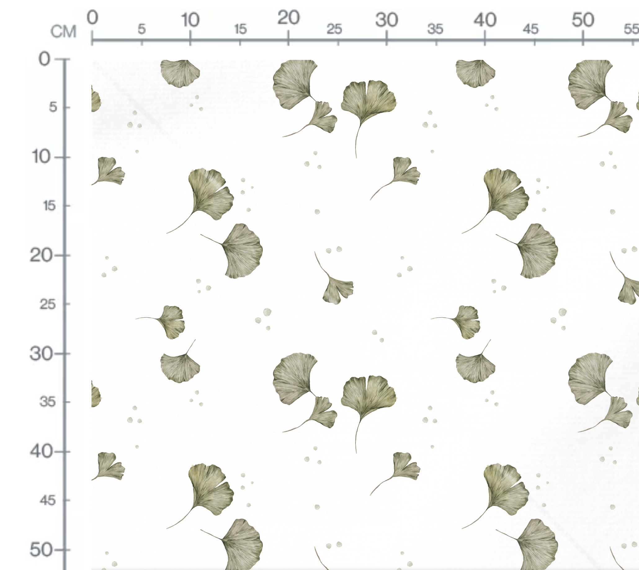Tissu imprimé Feuilles Ginkgo Vert Blanc, 11 tissus au choix