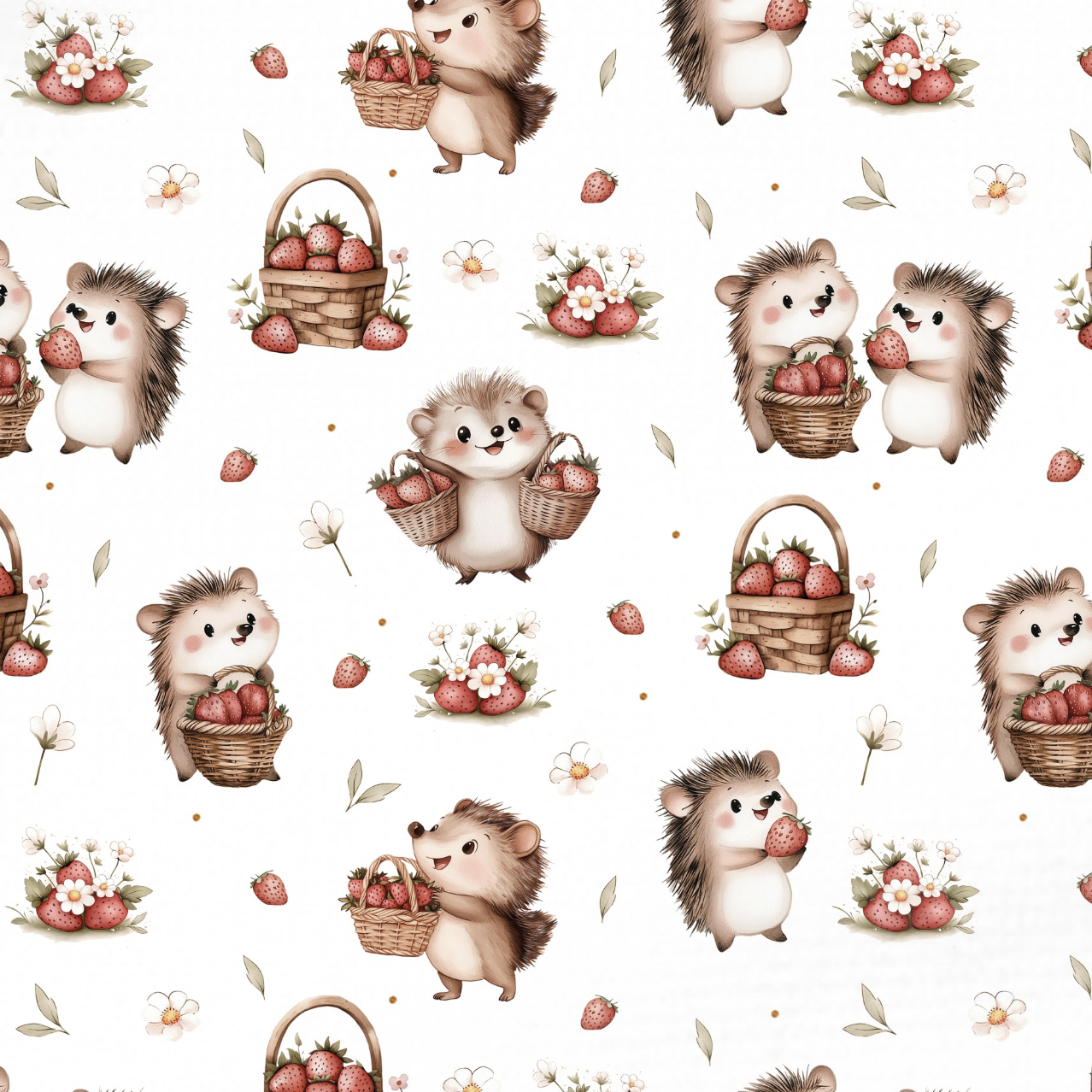 Découvrez notre magnifique imprimé Hérisson Fraises, idéal pour réaliser des créations pour enfants, à la fois confortables et adorables.