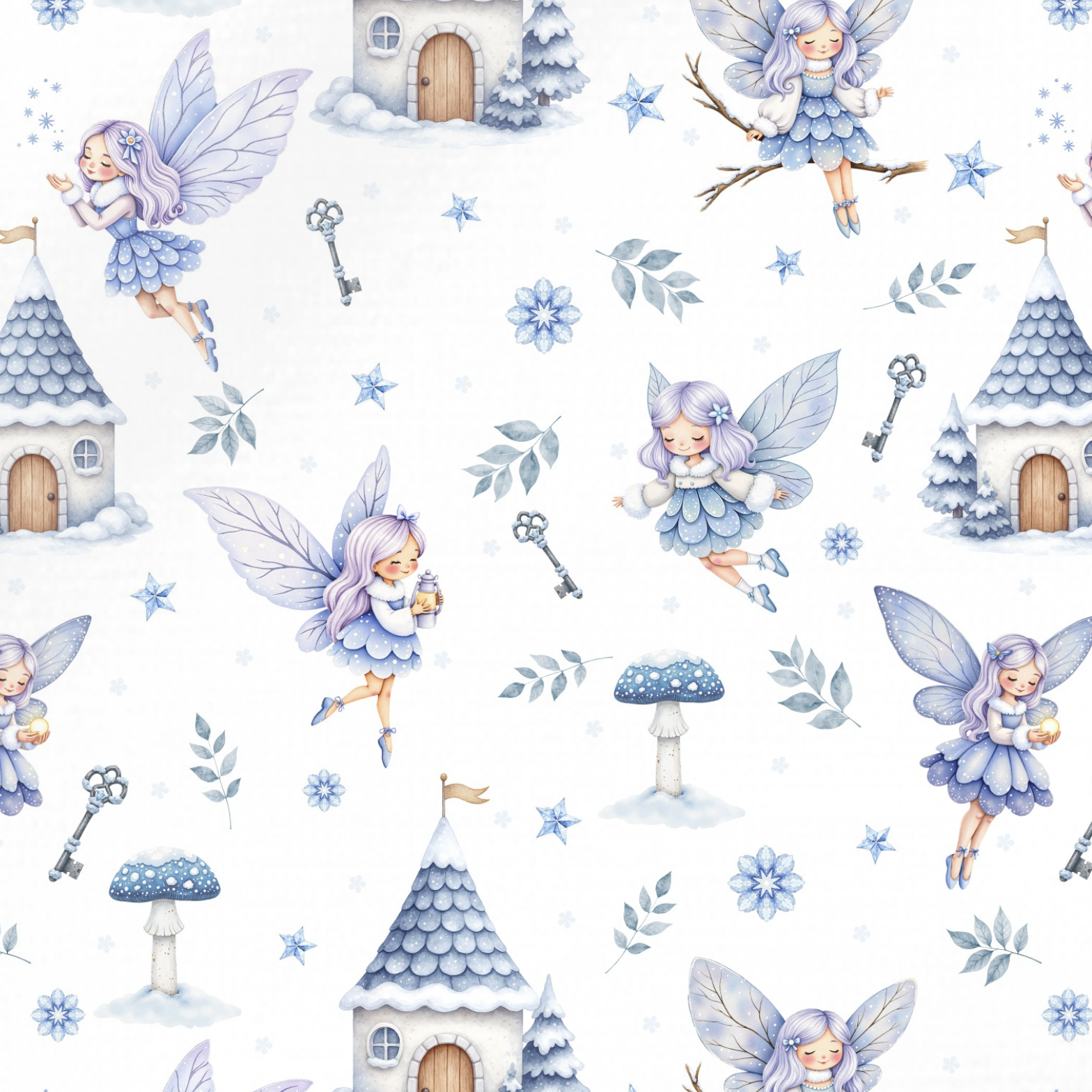 Découvrez notre magnifique Imprimé Hiver Fée de Foret, idéal pour réaliser des créations pour enfants, à la fois confortables et adorables.