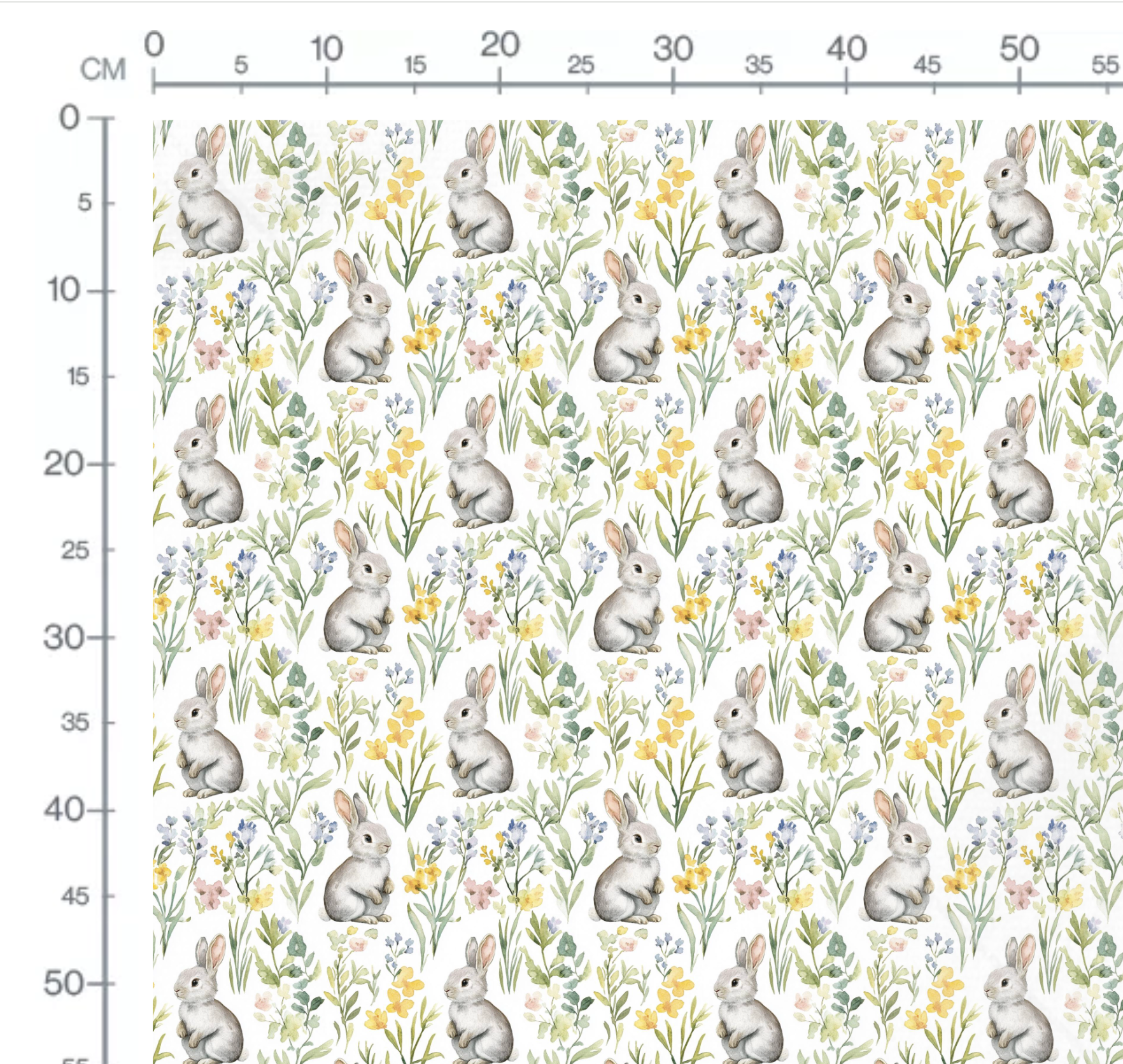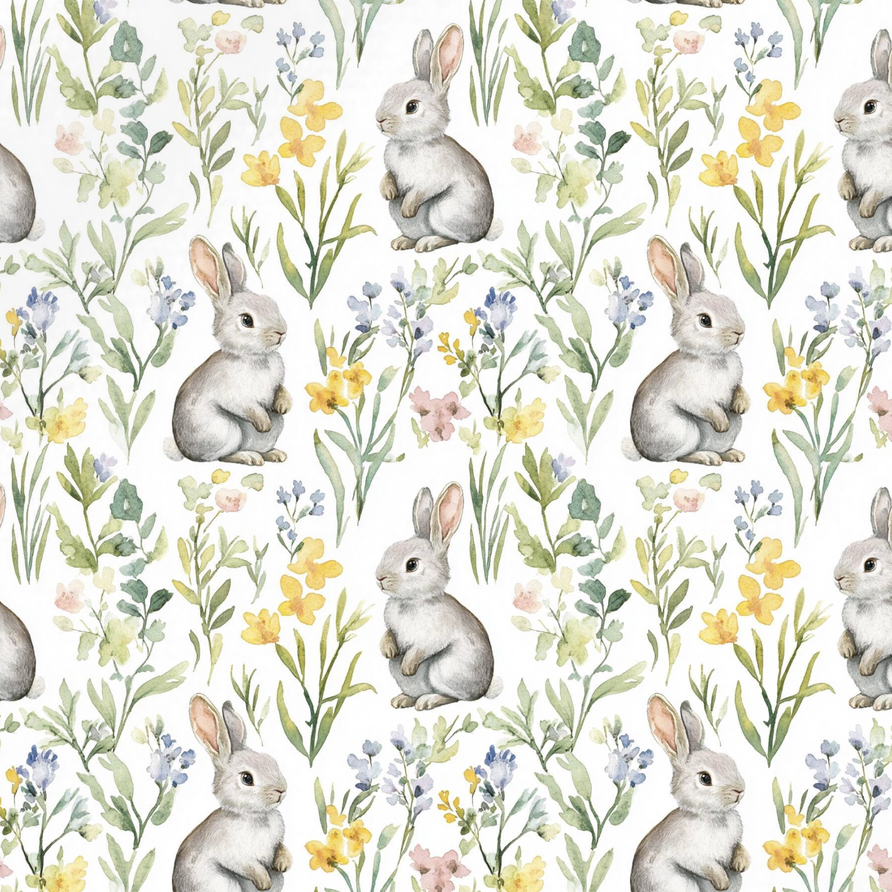 Découvrez notre magnifique imprimé Lapin Fleurs Jonquilles, idéal pour réaliser des créations pour enfants, à la fois confortables et adorables.