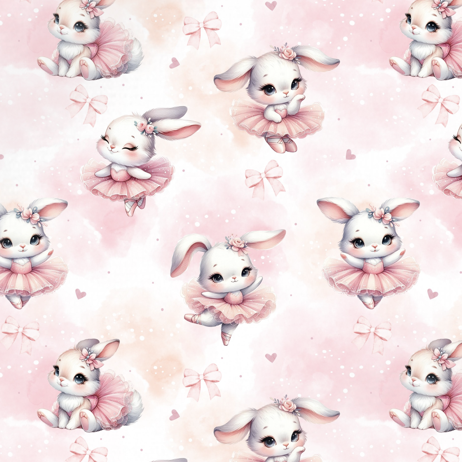 Tissu Imprimé Lapin Mignon Ballerine Coeur, 11 tissus au choix