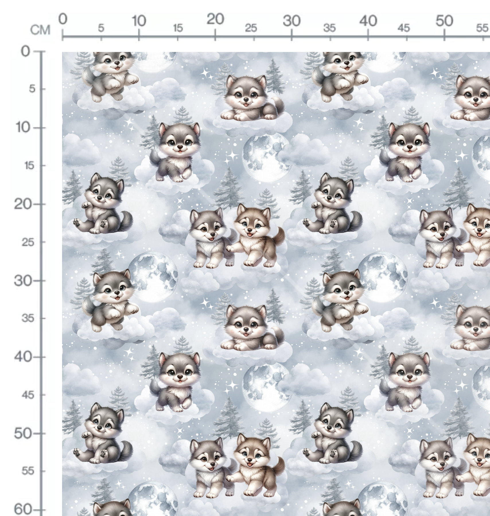 Découvrez notre magnifique imprimé Loup Mignon Lune Sapin, idéal pour réaliser des créations pour enfants, à la fois confortables et adorables.