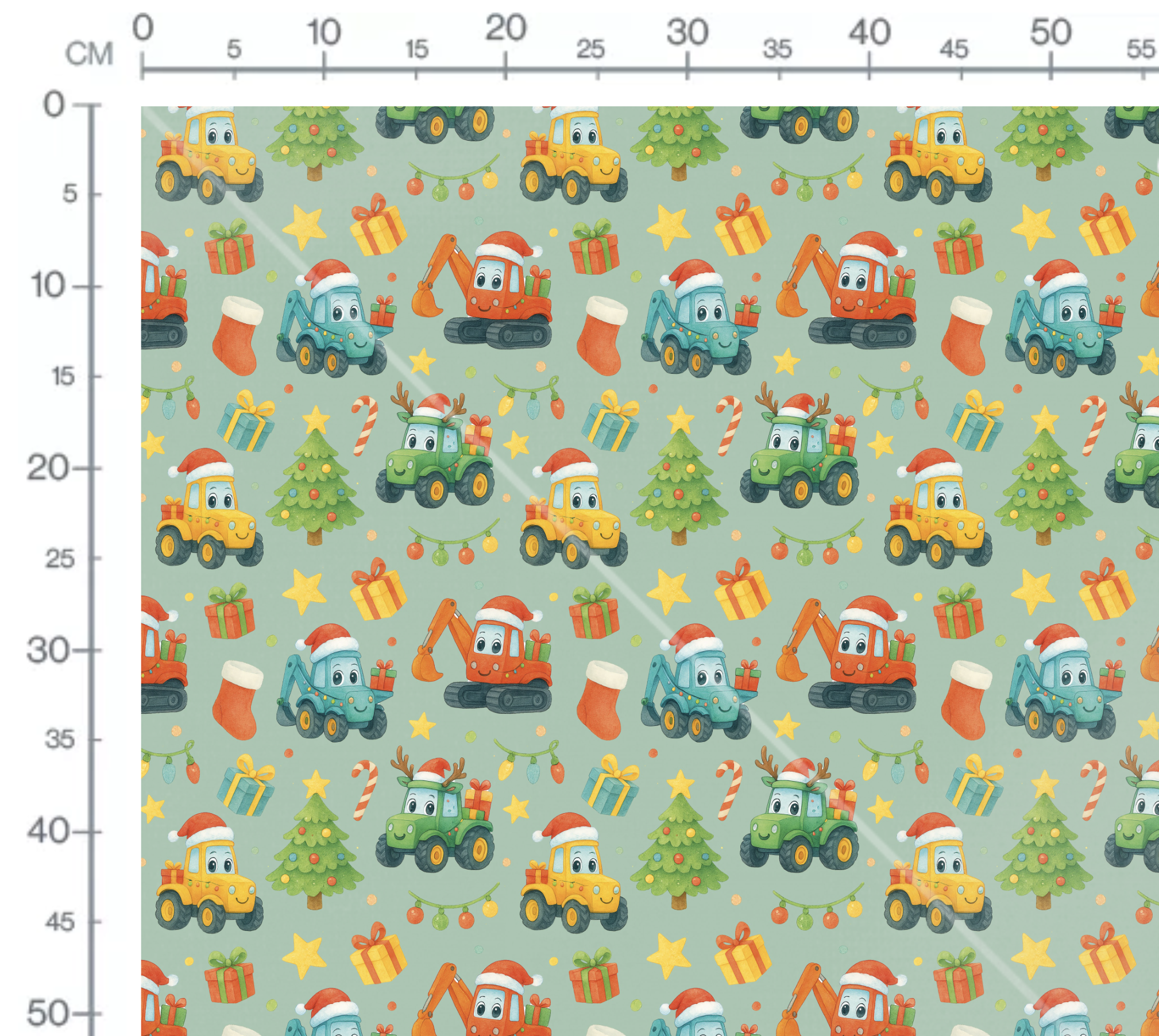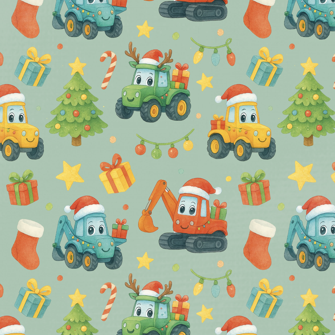 Découvrez notre magnifique imprimé Noel Camion Tractopelle Vert, idéal pour réaliser des créations pour enfants, à la fois confortables et adorables.
