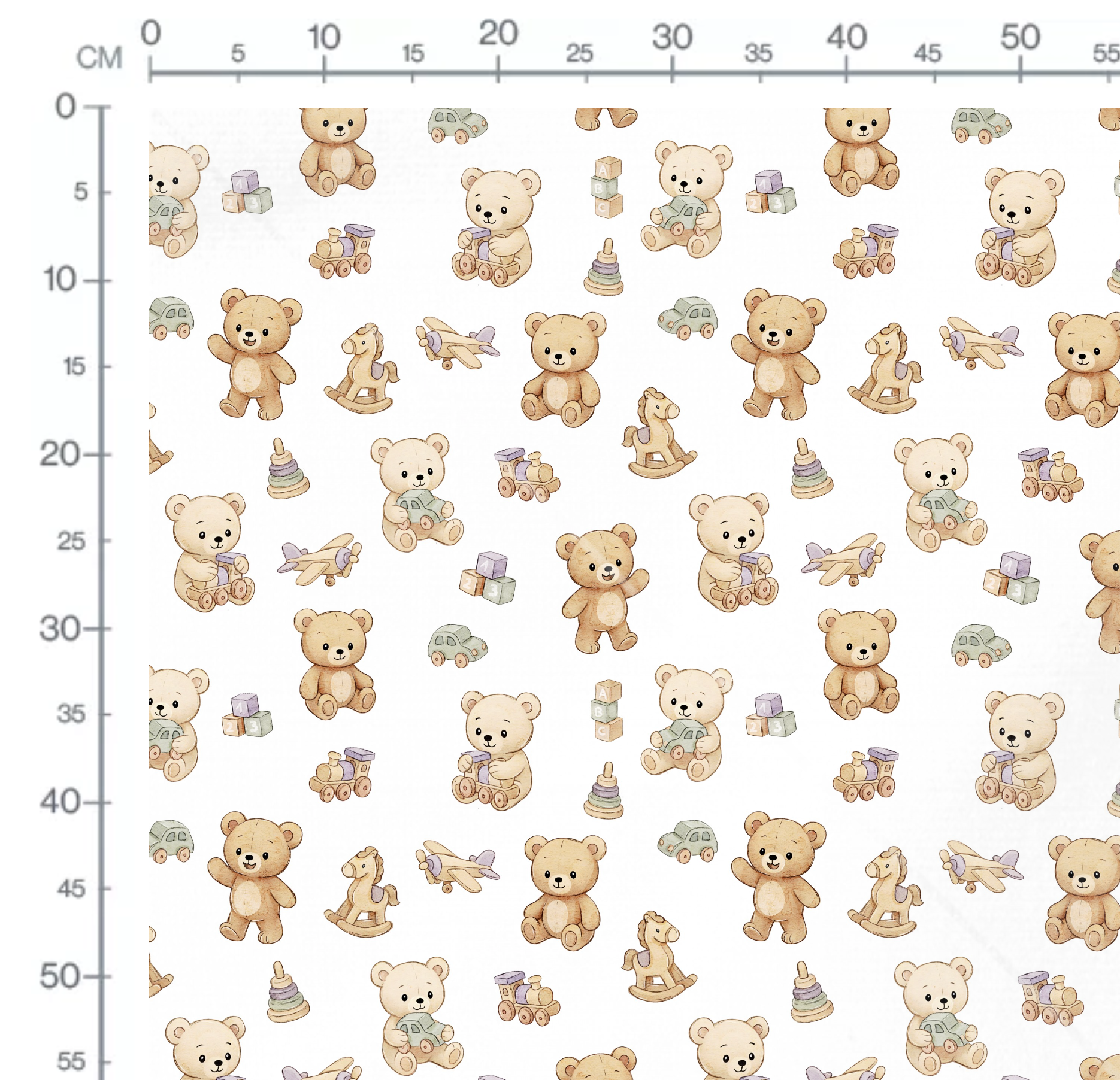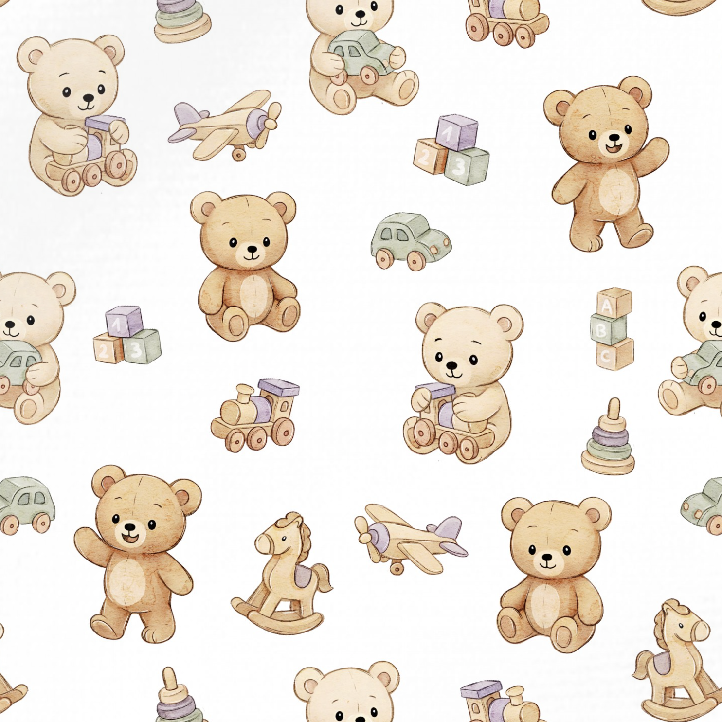 Découvrez notre magnifique imprimé Ourson Jouets En Bois Blanc, idéal pour réaliser des créations pour enfants, à la fois confortables et adorables.