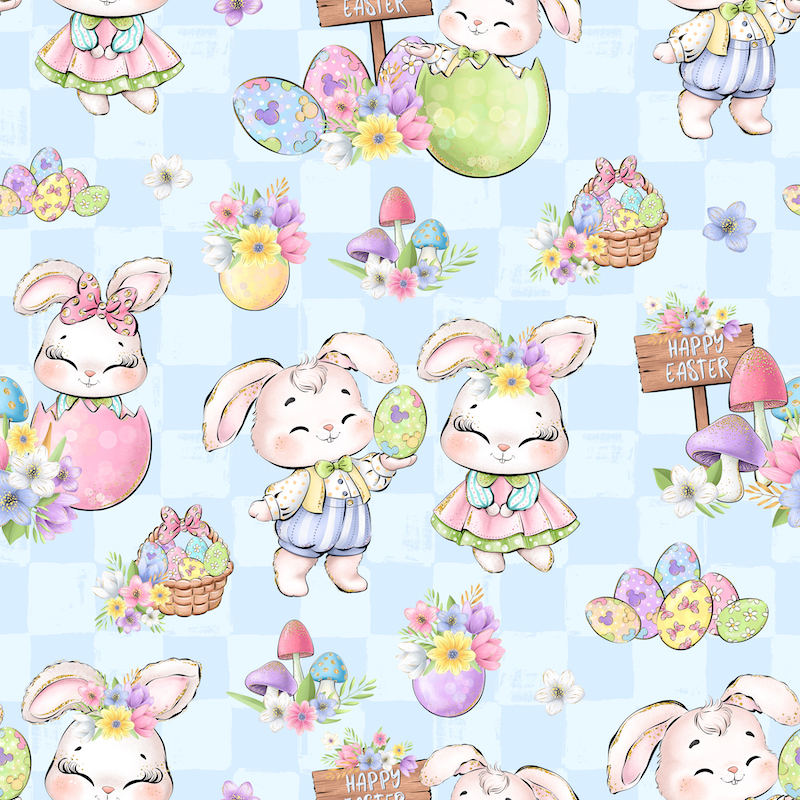 Découvrez notre magnifique imprimé Paques Girly Lapins Carreaux, idéal pour réaliser des créations, à la fois confortables et adorables.