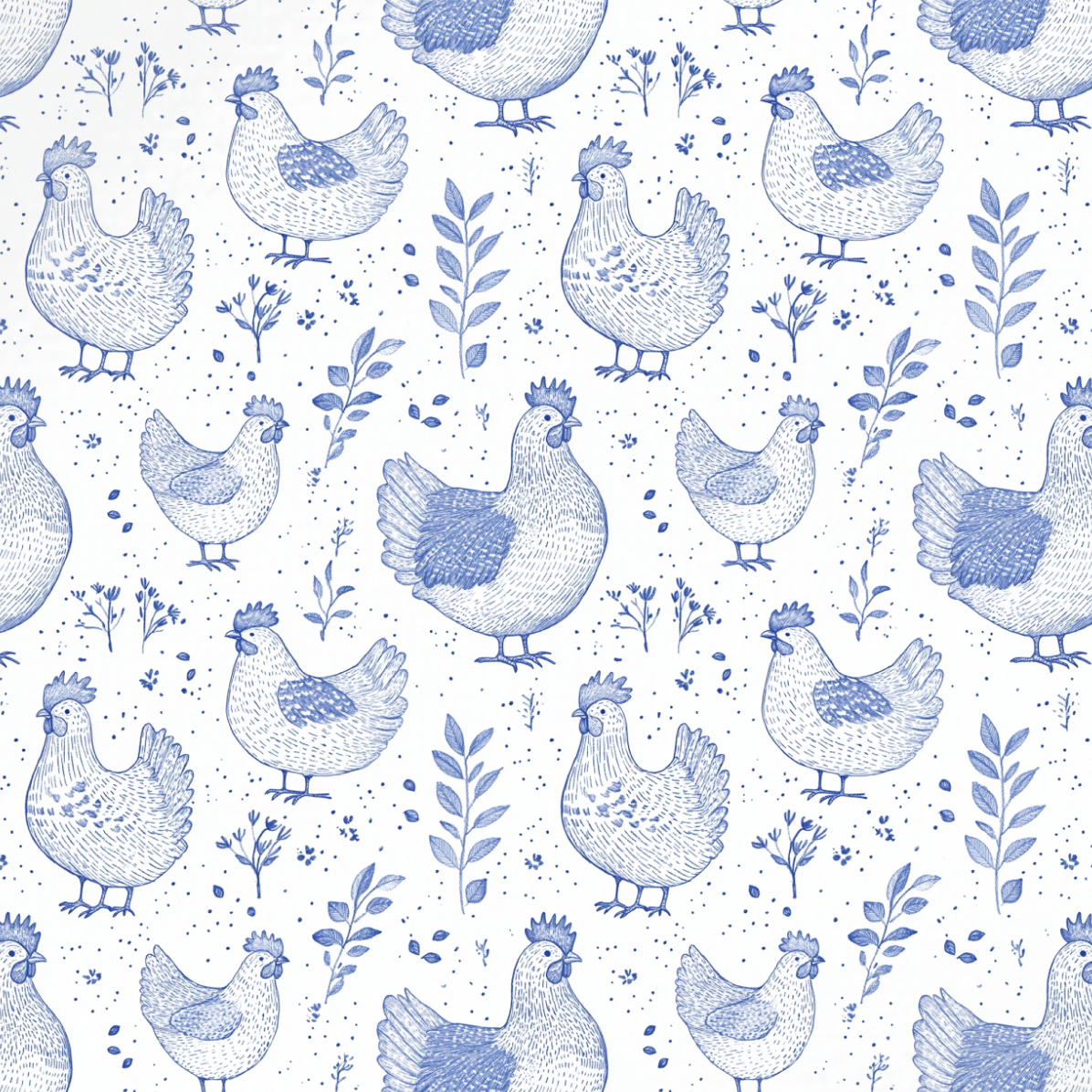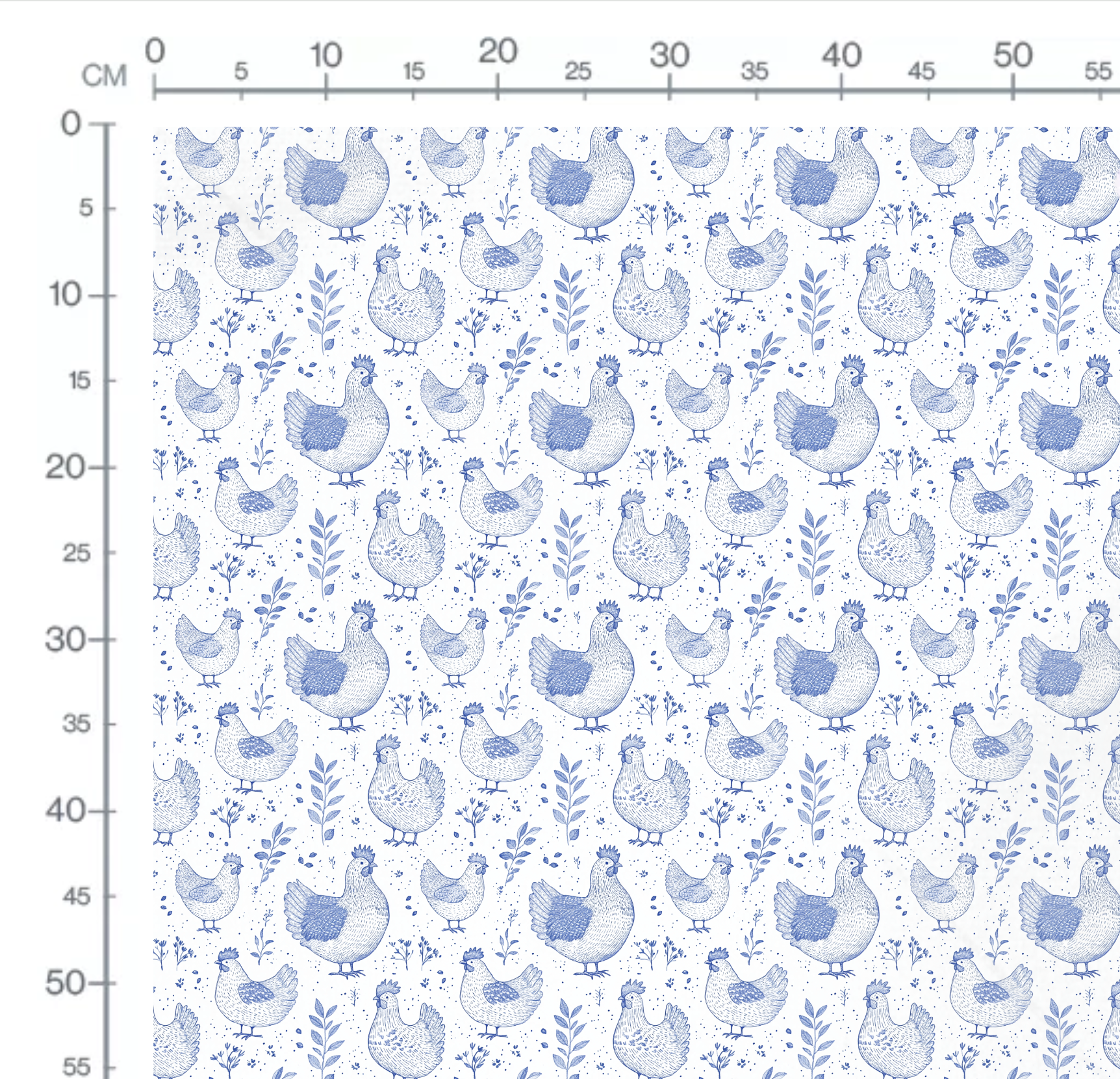 Tissu Imprimé Poule Style Toile de Jouy, 11 tissus au choix
