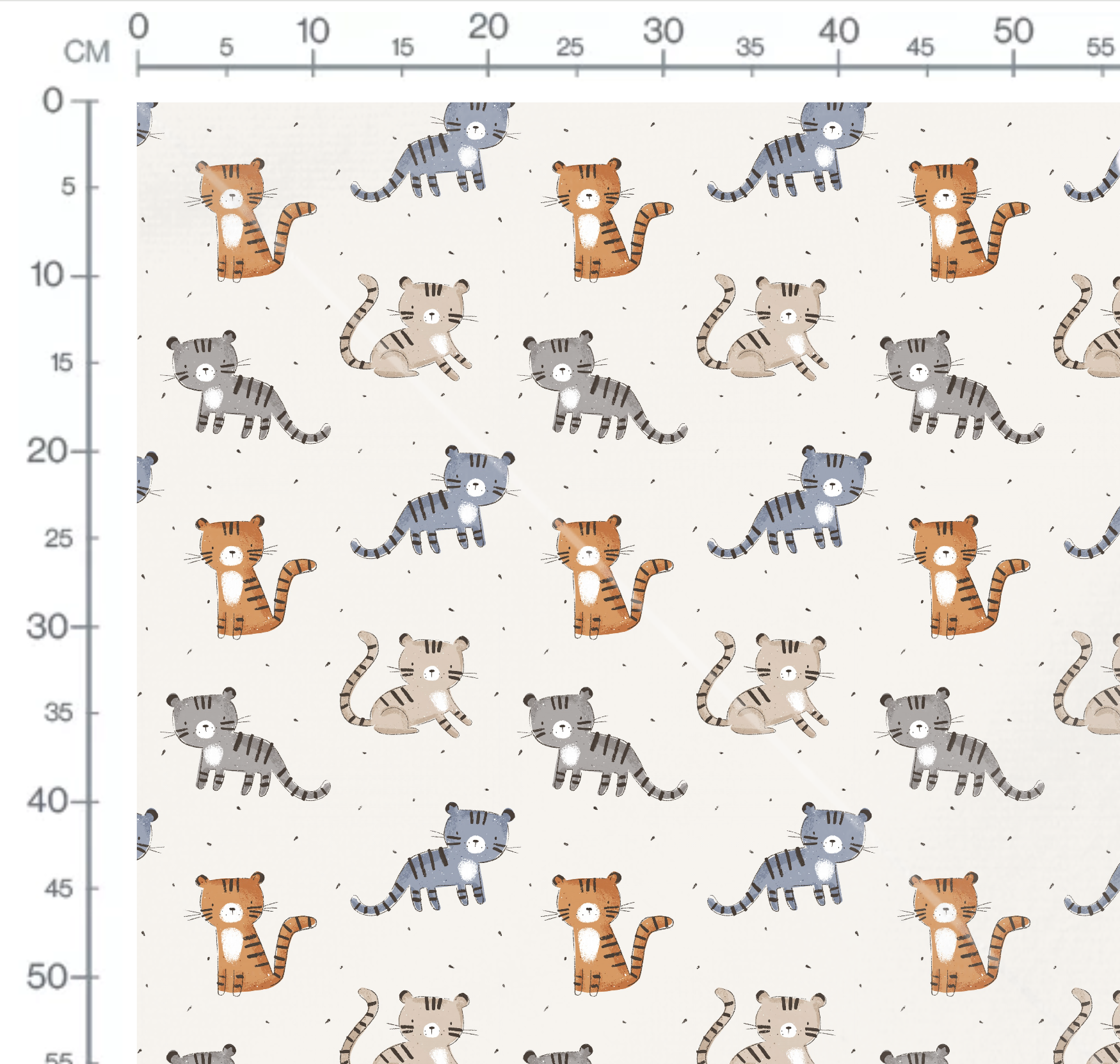 Découvrez notre magnifique imprimé Tigre Orange Gris Bleu, idéal pour réaliser des créations pour enfants, à la fois confortables et adorables.