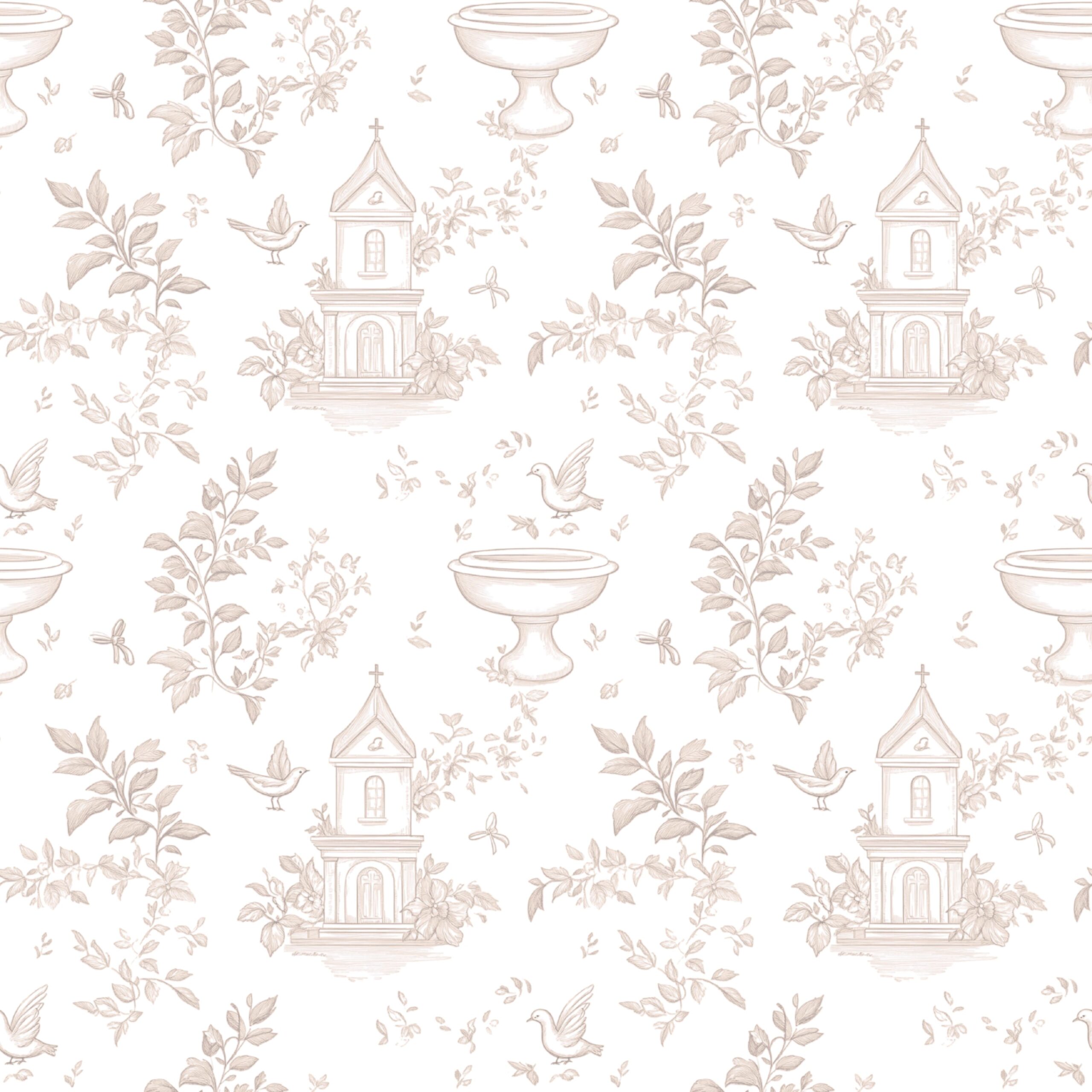 Découvrez notre magnifique Imprimé Toile de Jouy Bapteme Beige, idéal pour réaliser des créations pour enfants, à la fois confortables et adorables.