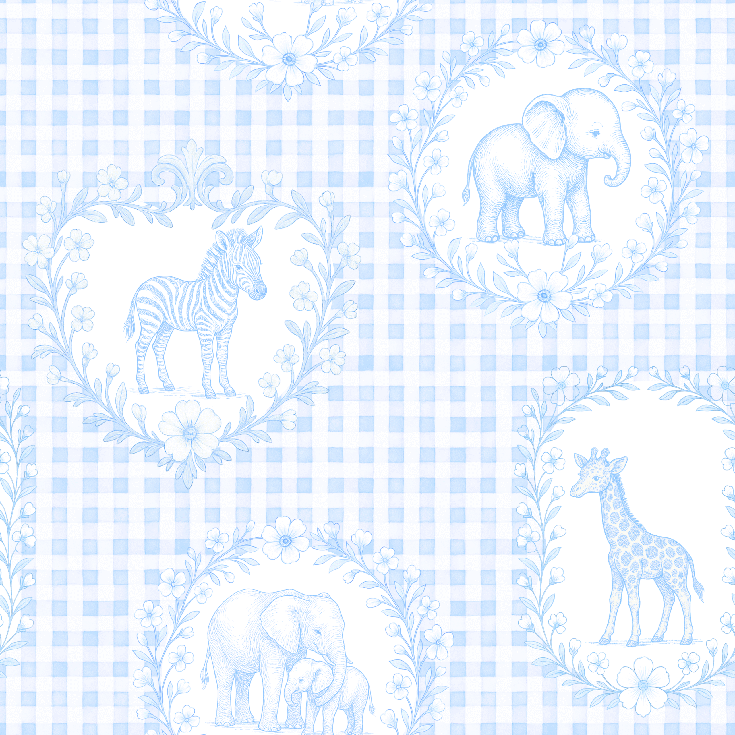 Découvrez notre magnifique Imprimé Inspiration Toile de Jouy Safari Vichy Bleu, idéal pour réaliser des créations pour enfants, à la fois confortables et adorables.  Disponible en plusieurs coloris. Possibilité de rendre le motif plus petit ou plus grand (service offert, merci de me contacter :)