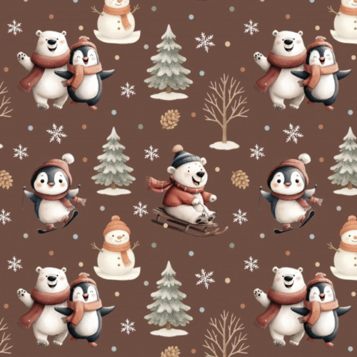 Tissu Imprimé Noel Animaux Chocolat, 11 tissus au choix