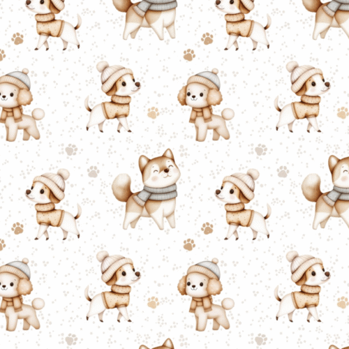 Tissu Imprimé Chiens en Hiver, 10 tissus au choix